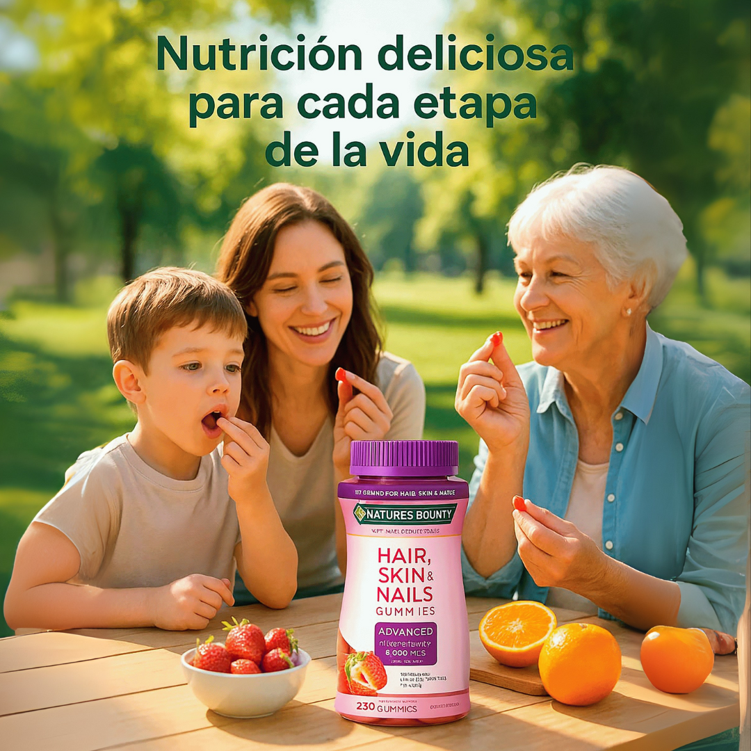 ¡Potencia tu belleza natural con las gomitas Nature’s Bounty Hair, Skin & Nails! En el competitivo mundo del cuidado personal, ser número uno no es solo un título, es una promesa de calidad y eficacia. Estas deliciosas gomitas de biotina con sabor a fresa son el aliado perfecto para quienes buscan un cabello radiante, una piel luminosa y uñas fuertes, todo desde adentro hacia afuera.